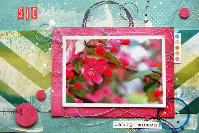 Nie wiem, czy zauważyliście, że Pinezka używa do swoich prac próbki kolekcji, którą znaleźć możecie na pasku tytułowym każdego naszego papieru 30×30. Pinezka lubi wszelkie kółka i kropki i dlatego uważa, że fajnie to wygląda. No i nic się nie wyrzuca 🙂