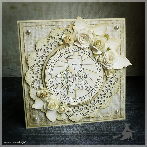 Witam, u mnie w końcu wyszło słońce.. aż chce się robić jasne kartki:) Sezon Komunii zaraz się zacznie więc trzeba się do niego przygotować:)